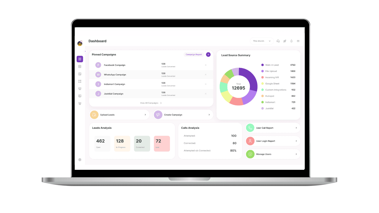 13) Campaign segregation to track picked and missed calls